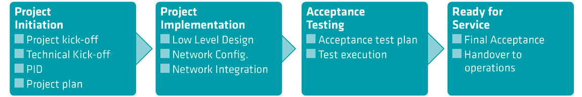 Telenabler secures a defined project implementation process to deliver the services in a flexible way that covers the following areas: